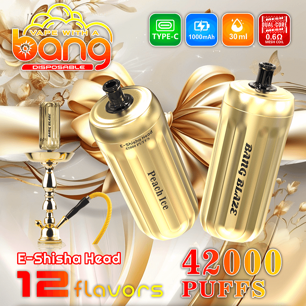 Bang Blaze 42000 Puffs 42K E-Shisha Head Disposable Vape 0% 2% 3% 5% Nicotine 12Tastes Gold LED Display Factory Direct