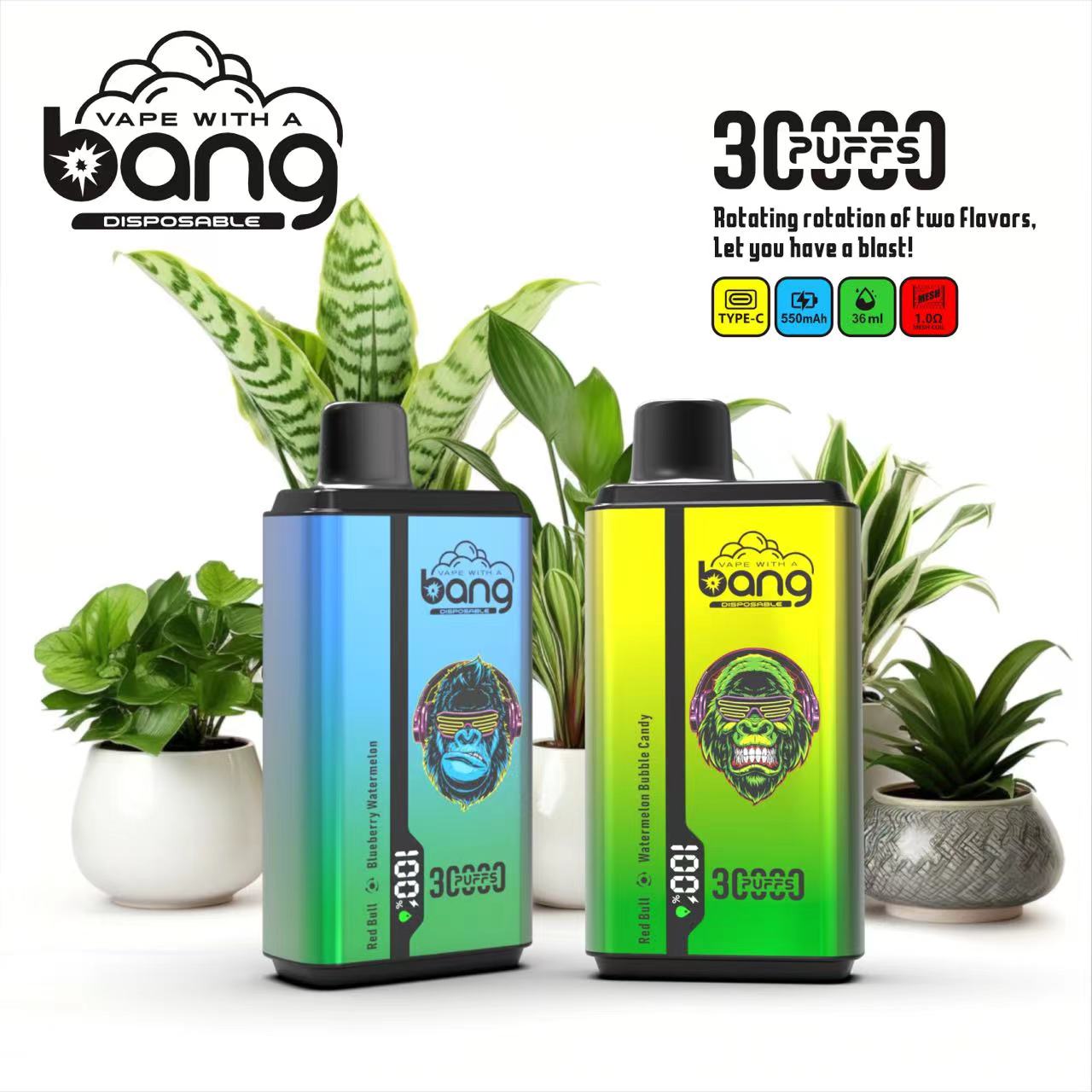 Bang 30000 30k Puffs Double Taste Disposable Vape 0% 2% 3% 5% Nicotine 12Tastes LED Display Rechargeable Factory Direct